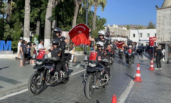 30 Ağustos Zafer Bayramı kutlamaları Bodrum'da düzenlenen bir dizi etkinlikle devam ediyor. Bu kapsamda, Bodrum İlçe Emniyet Müdürlüğü'ne bağlı trafik ve yunus ekipleri motosikletler ile kortej oluşturdu. Otogar önünde başlayan kortej Neyzen Tevfik Caddesi üzerinde devam etti. Yerli ve yabancı turistler polis ekiplerine alkışlarla eşlik etti. Motosiklet timleri seyir halinde Türk bayrağı açtı. Korteje motosikletli gruplar ve pikap araçlar da katıldı.