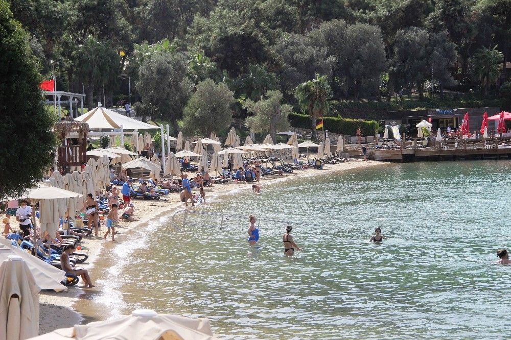 Türkiye'nin birçok şehrinde sağanak yağmur ve soğuk hava etkili olurken, Bodrum'da ise yazdan kalma günler yaşanmaya devam ediyor. Yaz sezonunun bitmesine rağmen turistler ilçeyi terk etmedi. 30 dereceye ulaşan sıcak havanın tadını çıkaran yerli ve yabancı turistler sahillere akın etti. Bazı vatandaşlar sahil kenarlarındaki restoran ve kafelerde oturmayı tercih ederken bazıları ise denize girip güneşlenmeyi tercih etti. Kumbahçe, Gümbet, Bitez ve birçok sahil yabancı turist akınına uğradı. Denize giren turistler bol bol güneşlenerek sıcak havanın keyfini doyasıya çıkardı. Turistler, ekim ayında denize girmenin çok keyifli olduğunu ifade etti.