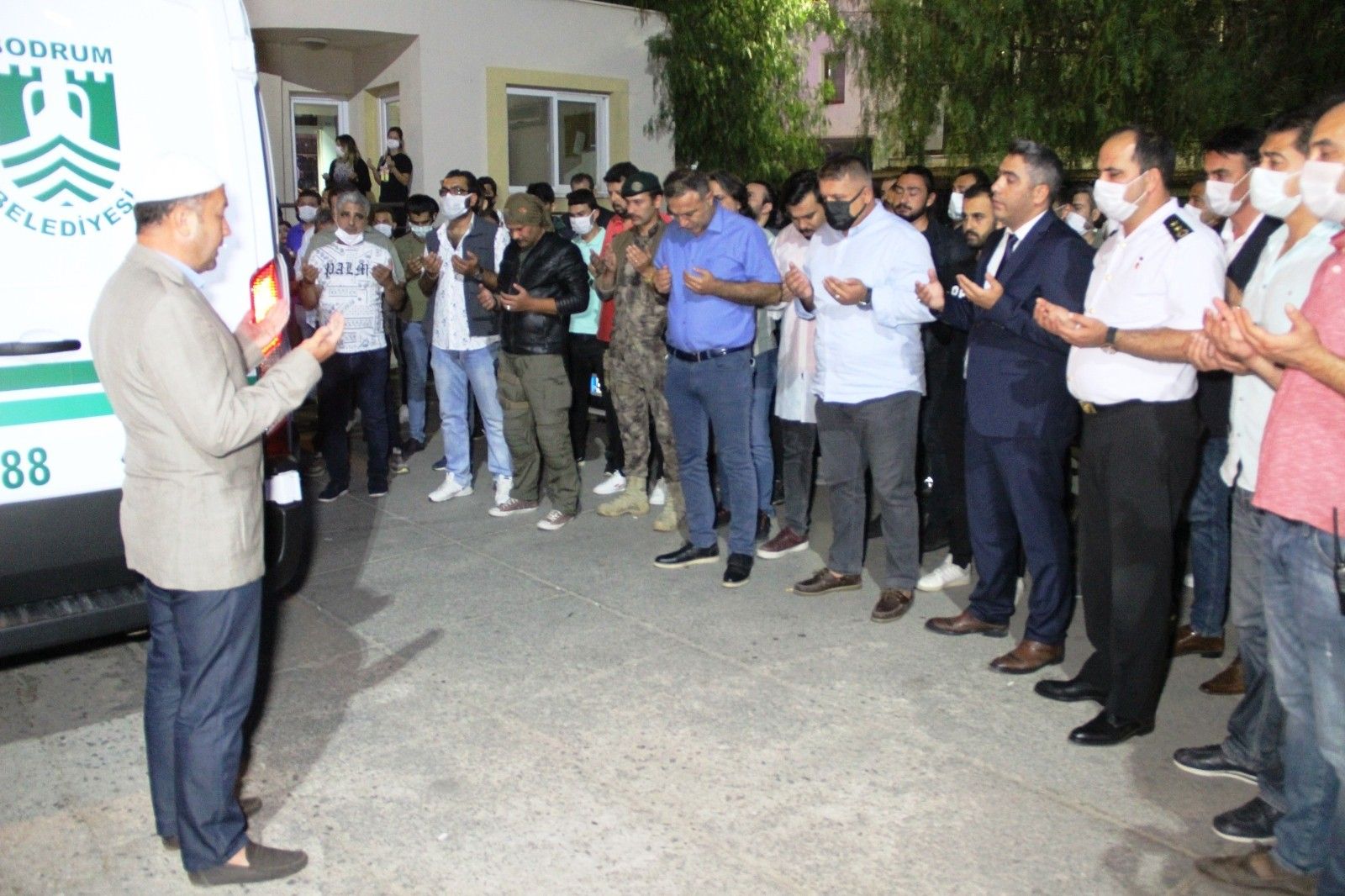 Muğla'nın Bodrum ilçesinde girdikleri silahlı çatışmada şehit olan 26 yaşındaki polis memuru Ercan Yangöz naaşı görev yaptığı Bodrum İlçe Emniyet Müdürlüğüne okunan duaların ardından meslektaşlarının gözyaşları arasından uğurlandı.