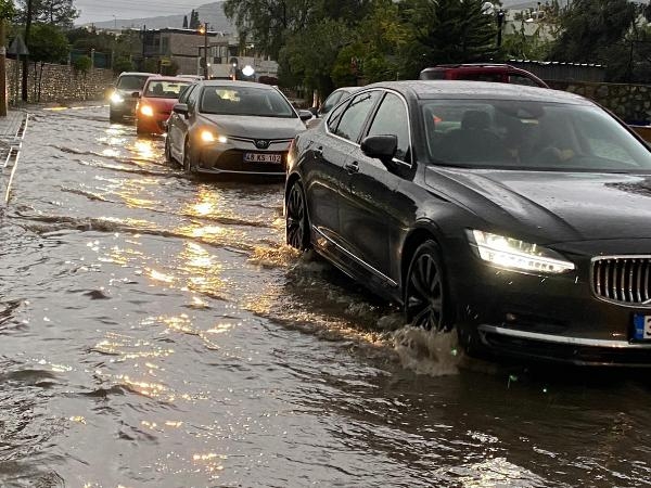 MUĞLA'nın Bodrum ilçesinde, etkili olan kuvvetli sağanak yaşamı olumsuz etkiledi. Cadde ve sokaklar göle dönerken, araç sürücüleri ve vatandaşlar zor anlar yaşadı.