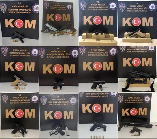 Muğla İl Emniyet Müdürlüğü Kaçakçılık ve Organize Suçlarla Mücadele Şube Müdürlüğü Bodrum KOM Büro Amirliği ekipleri, bireysel silahlanma ve suç örgütlerine yönelik yaptığı operasyonlarda son 2 ayda 21 kişi hakkında adli işlem başlattı. Bodrum Cumhuriyet Başsavcılığı koordinesinde şüphelilerin üst ve ikametlerinde yapılan aramalarda 1 uzun namlulu silah, 20 ruhsatsız tabanca, 8 ruhsatsız tüfek, 6 bin 100 fişek ele geçirildi. (DHA)
