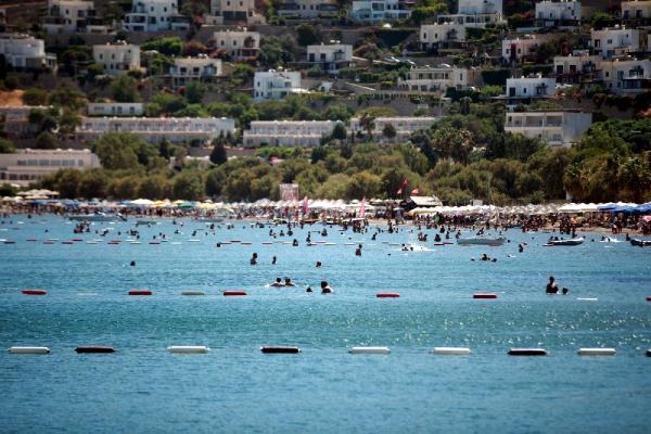 Dünyanın önemli turizm merkezlerinden biri olan Bodrum'da, bayram tatilinin son gününde plajlarda yoğunluk yaşandı. Ortakent-Yahşi plajında binlerce yerli ve yabancı turist, sıcak havada denize girerek serinledi. Kimi turistler ise 40 derece sıcaklıklığa ulaşan kentte güneşlenmeyi tercih etti. Özellikle Kumbahçe, Gümbet, Bitez, Gümüşlük, Yalıkavak ve Göltürkbükü gibi plajlarda yoğunluk olduğu görüldü. (DHA)
