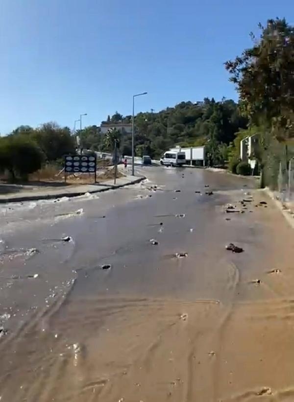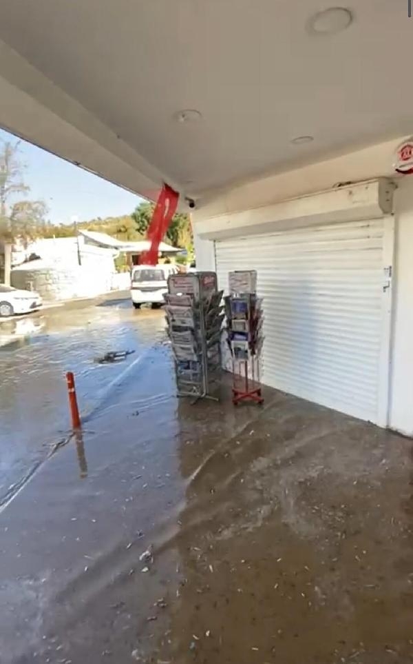 MUĞLA'nın Bodrum ilçesinde, ana isale hattı patladı. Bölgede iş yerlerini ve apartları su bastı.
