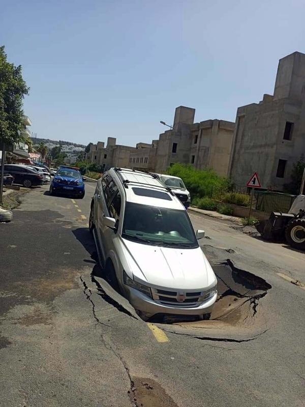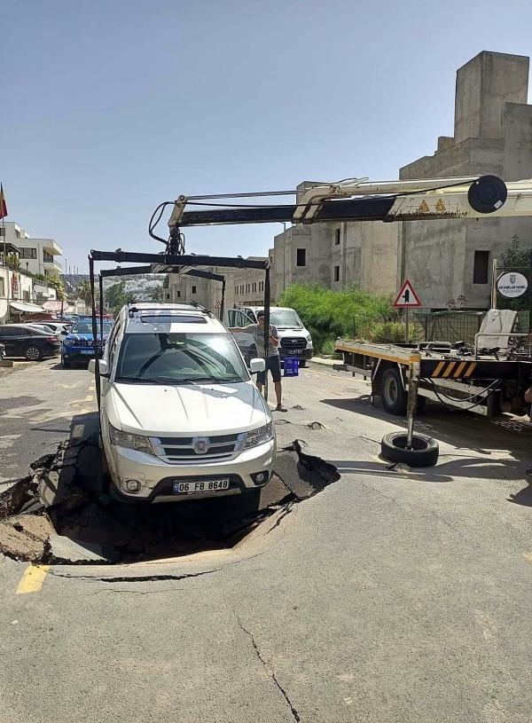 Muğla'nın Bodrum ilçesinde ana su isale hattında patlama meydana geldi. Patlama sırasında, yoldan geçen bir cip açılan dev çukurun içine düştü.