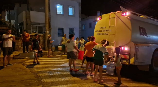 MUĞLA'nın Bodrum ilçesinde, birkaç gündür su kesintisinin yaşandığı Çırkan Mahallesi'ne muhtar, tankerle su dağıttı. Tankerin önünde damacana ve kovalarla kuyruk oluşturan mahalle halkı, yaşanan su kesintisine tepki gösterdi.