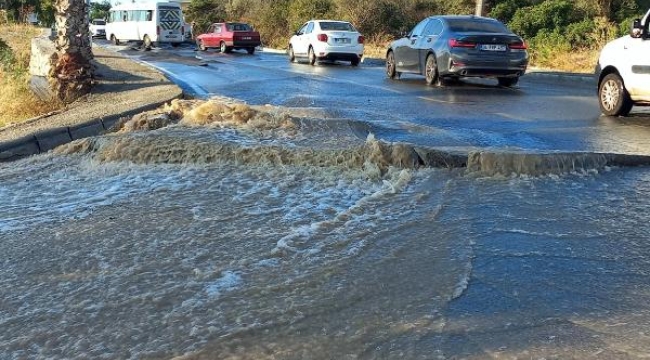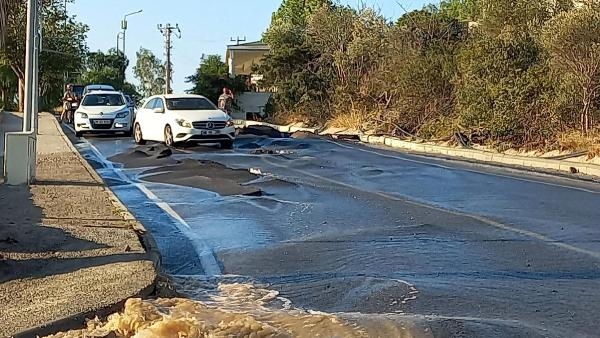 Bodrum ilçesinde, ana su isale hattı patladı. Bölgedeki bazı iş yerlerini su basarken, çöken yolda çukur oluştu.