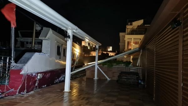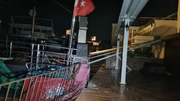 Bodrum'da fırtına etkisini sürdürüyor. Bu kapsamda, akşam saatlerinde tonozdan ayrılan yüzer disko, Kumbahçe'de faaliyet gösteren dondurmacıya çarptı. Çarpmanın etkisiyle dondurmacının tentesi yıkıldı. Hemen yan taraftaki otelin de deniz kenarındaki korkuluğu tahrip oldu. Olayda yüzer disko gemi de hasar aldı. Olay yerine Sahil Güvenlik ekipleri sevk edildi. Ekiplerin bölgedeki çalışması sürüyor.