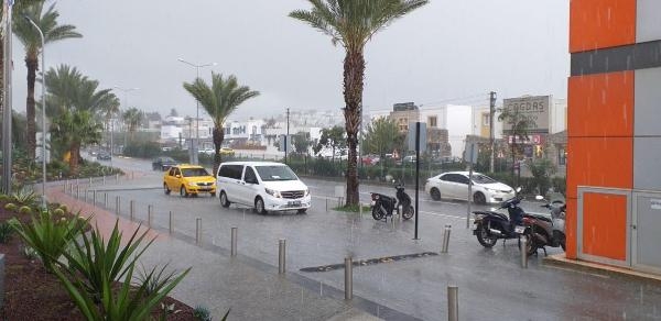 Meteoroloji 4'üncü Bölge Müdürlüğü Bodrum için sağanak yağış ve kuvvetli rüzgar uyarısında bulundu. Sabah saatlerinde etkili olan rüzgarla birlikte öğleden sonra sağanak yağmur etkisini arttırdı. Gümbet Kavşağı'nda yollarda su birikintisi oluşurken, vatandaşlar zor anlar yaşadı. Gümbet Plajı'nda etkili olan yağış nedeniyle vatandaşlar kafelere sığındı. Öte yandan, denizin rengi yağış ile birlikte renk değiştirdi. Yağışın etkisini arttırması nedeniyle Umurca Mahallesi Dere Sokak'ta caddeler göle döndü. Mazgallar taştı, sürücüler zor anlar yaşadı. Yağışın gece saatlerine kadar süreceği belirtildi.