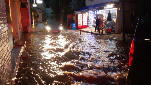 MUĞLA'nın Bodrum ilçesinde, etkili olan sağanak yağış yaşamı olumsuz etkilerken, cadde ve sokaklarda su birikintileri oluştu. Bazı caddeler ise göle döndü.