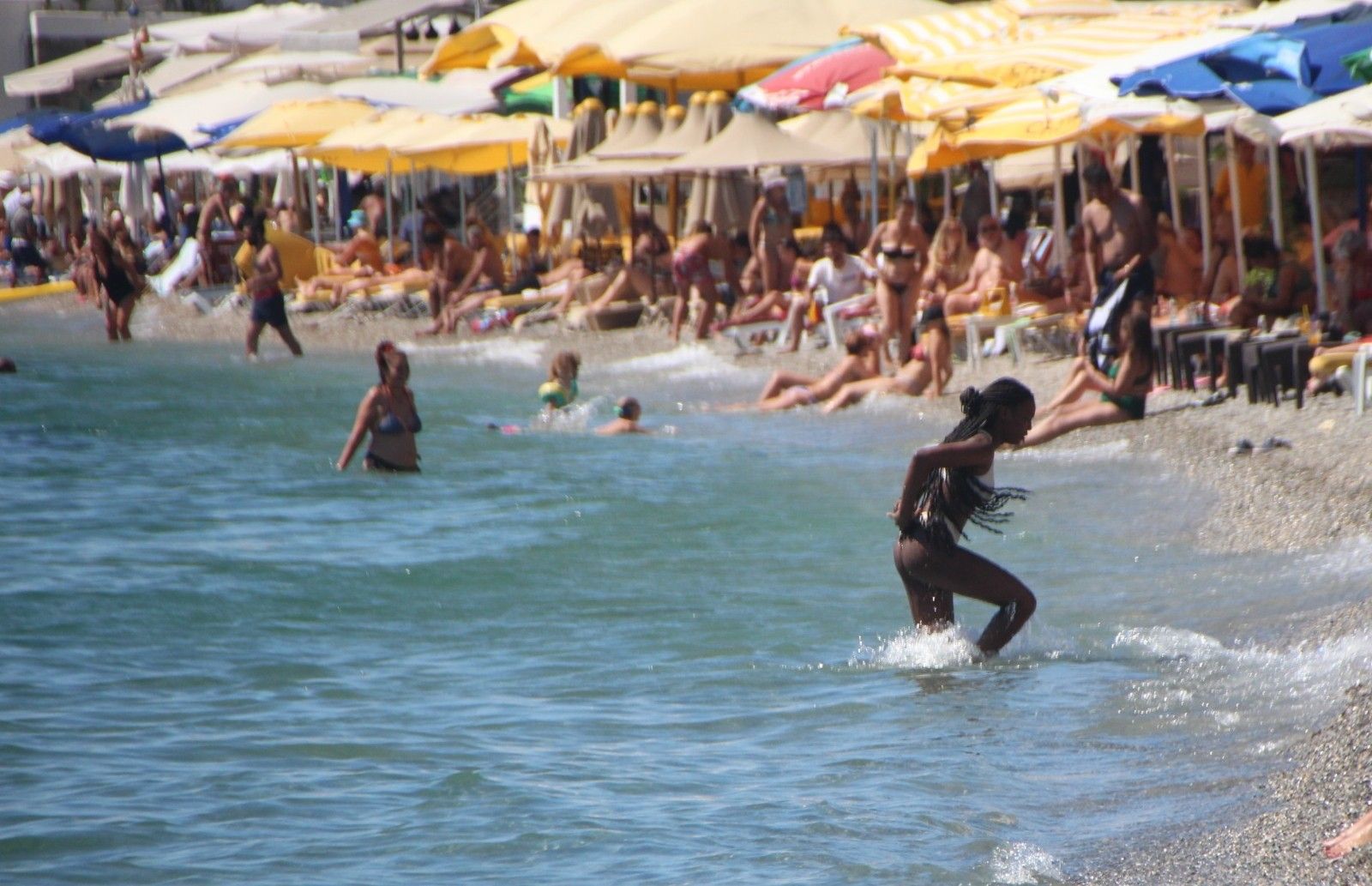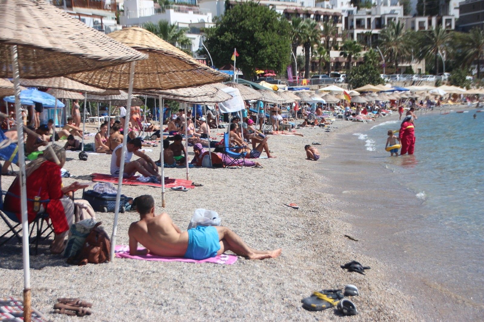 Hava sıcaklıklarının 30 derecenin üzerine çıktığı Muğla'nın Bodrum ilçesinde, sahillerde hafta sonu yoğunluğu yaşandı.