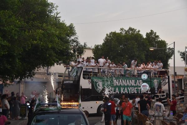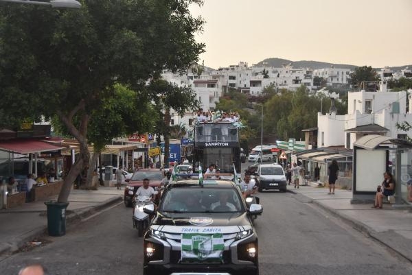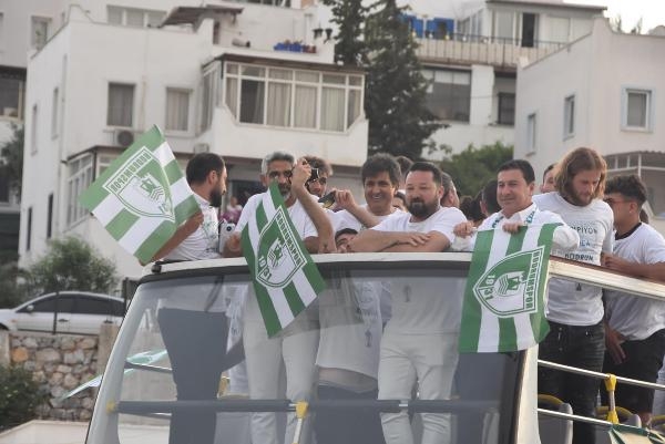 Bodrumspor TFF 2'nci Lig Play-Off finalinde İzmir'de Teco Karacabey Belediyespor'u 3-0 yenerek tarihinde ilk kez 1'inci Ligde mücadele etmeye hak kazandı. Yeşil-beyazlı ekip taraftarıyla kupa ve şampiyonluk coşkusunu yaşamak için Gümbet tesislerinde bir araya geldi. Üstü açık takım otobüsüyle kenti turlayan takıma taraftarlar araçları ve motosikletleriyle eşlik etti. Yaklaşık 2 saat süren kortejde taraftarlar yeşil- beyaz meşale yakarak geceye renk kattı.