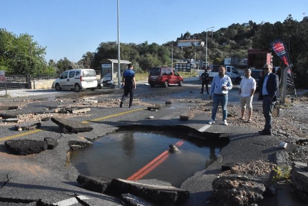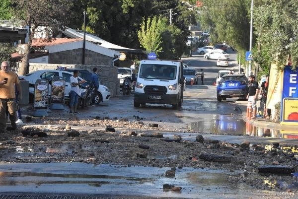 MUĞLA'nın Bodrum ilçesinde ana su isale hattında meydana gelen patlamanın ardından cadde ve sokaklar göle döndü, 4 iş yeri ve bir depo sular altında kaldı. Hattan çıkan tazyikli su asfaltı yararken, cadde trafiğe kapatıldı.