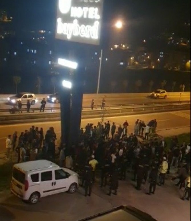Akşam saatlerinde çok sayıda Bayburtlu taraftar, Bodrumspor kafilesinin kaldığı otele geldi. Bodrumspor ve yeşil beyazlı formayı giyen futbolcular aleyhine küfürlü tezahürat yapan taraftarlar, araçlarının kornalarını çaldı, otel önüne torpil attı.