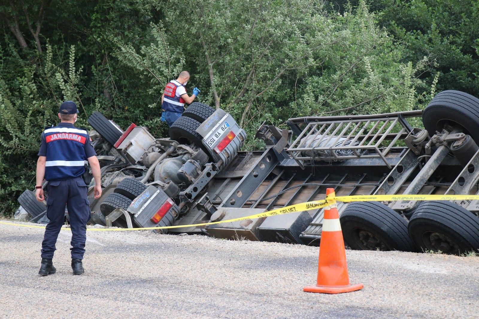 Bolu'da, tır şarampole devrildi, sürücü hayatını kaybetti