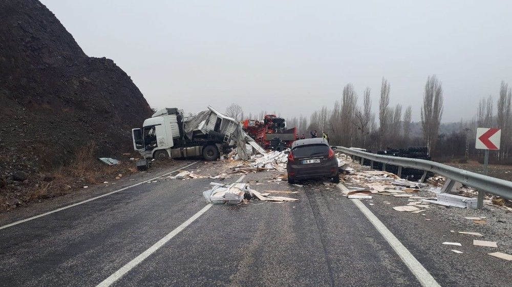 Kaza sonrası Aydıncık-Zile yolu bir süreliğine trafiğe kapandı.