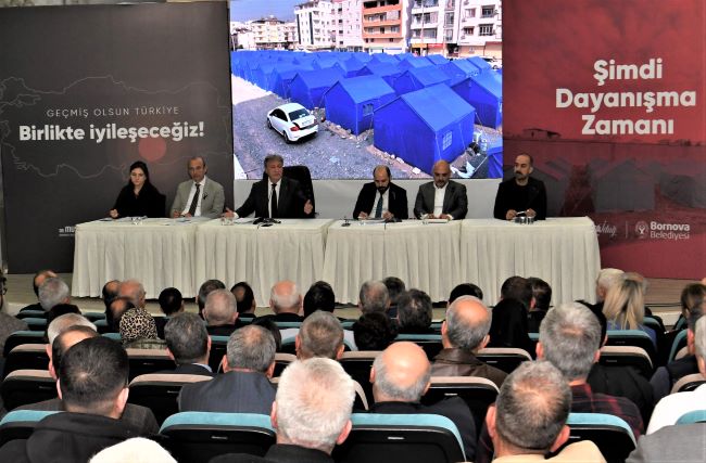 Bornova Belediye Başkanı Dr. Mustafa İduğ, Bornova Belediye Meclisi öncesinde Türkiye’yi yasa boğan depremlerin ardından yapılan çalışmaları anlattı. Bornova Belediye Meclis üyelerinin yanı sıra muhtarlar, sivil toplum kuruluşu temsilcileri, yardım toplama çalışmalarında gönüllü olarak çalışan gençler, siyasi partilerin ilçe başkanları, iş dünyasından temsilciler ve çok sayıda vatandaşın da katıldığı toplantıda, depremde yaşamını yitirenlerin anısına saygı duruşunda bulunuldu.