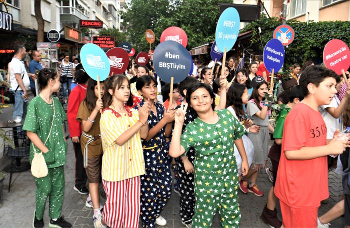 Düzenlenen etkinliklerde Ana kadro oyuncusundan kursiyerlerine, çocuk, genç yaşlı tüm BBŞT ailesi, rengarenk kostümleriyle yer aldı. Büyükpark’tan başlayan kortej yürüyüşü bando eşliğinde şarkılar ve marşlarla yapıldı. Palyaçolar ve jonglörgösterileri festivalleri aratmayan kutlamalara ayrı bir renk kattı. Küçükpark ve Süvari Caddesi boyunca devam eden kortej geçişi yine Büyükpark’ta son buldu. Yaşanan coşkuya Bornovalılar da ortak oldu. Kimileri alkışlarla tempo tuttu, kimileri korteje katıldı.