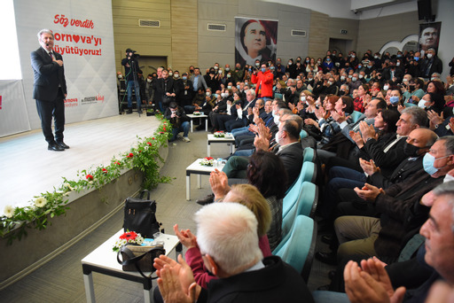 Programın açılış konuşmasını yapan Bornova İlçe Başkanı Ertürk Çapın, partililerin doldurduğu salonu işaret ederek, “İktidara yürüyen bir partinin örgütünün buraya sığmayacağını düşünmemiz lazımdı. Bu kalabalık, Bornova örgütün seçime hazır olduğunun, iktidarın örgütü olduğunun kanıtı oldu” dedi.