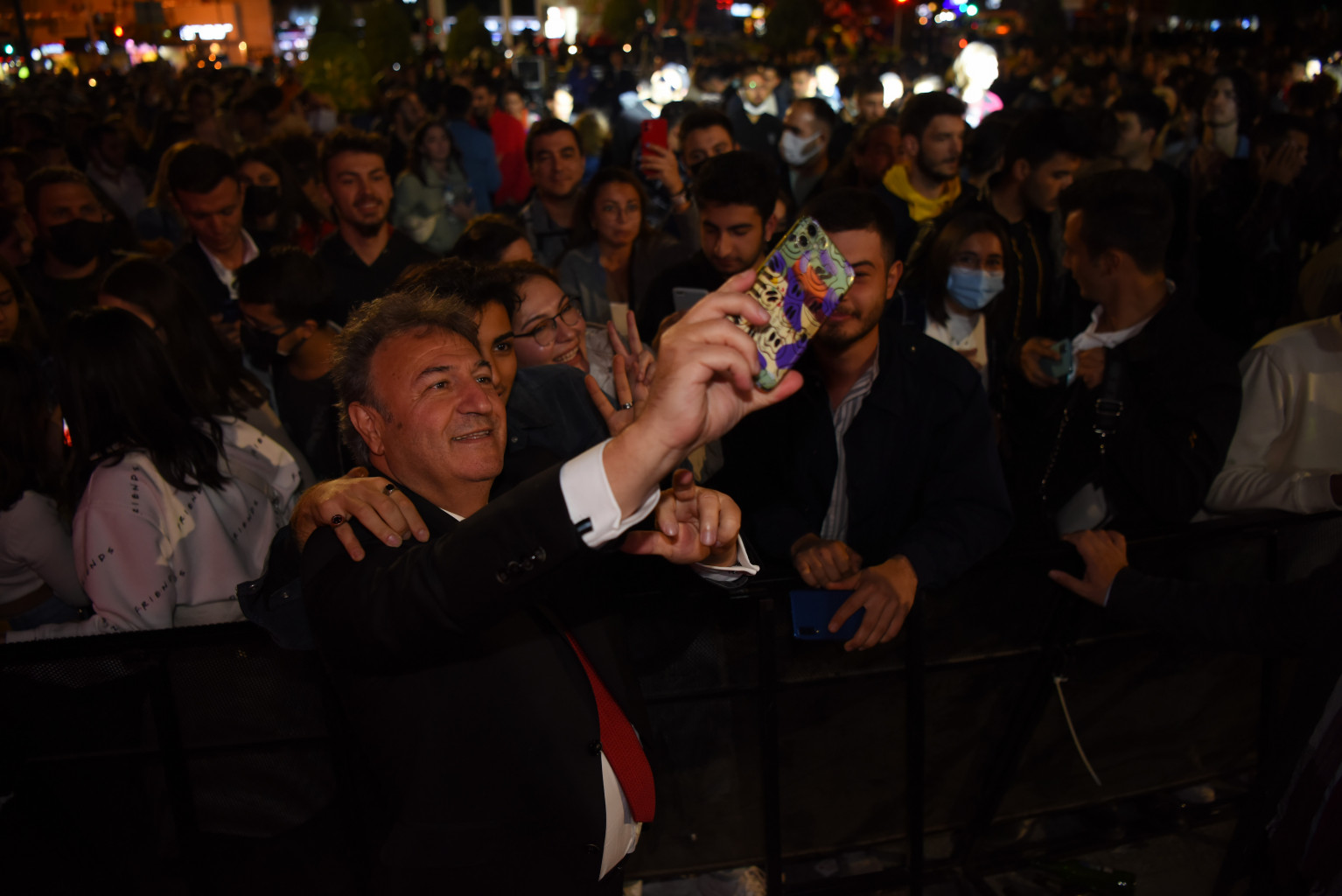 Sahneye çıkan Bornova Belediye Başkanı Dr. Mustafa İduğ, DJ Mahmut Orhan’a zeytin fidanı hediye etti. Konseri izlemek üzere Bornova Cumhuriyet Meydanı’nı hınca hınç dolduran gençlere seslenen Başkan İduğ, unutulmaz bir gece yaşatan Orhan ve ekibine teşekkür ederken, “Cumhuriyetimizin 98’inci kuruluş yıldönümünde, umudumuz olan pırıl pırıl gençlerimizle birlikte kutlamaktan memnuniyet duyuyorum. Cumhuriyetimize sahip çıkan tüm gençlerimizle gurur duyuyorum. Bizlere Türkiye Cumhuriyeti’ni emanet eden, Ulu Önder Mustafa Kemal Atatürk ve silah arkadaşlarına söz veriyoruz. Türkiye Cumhuriyeti’ni ileri taşıyacağız. Ne mutlu Türk’üm diyene” diye konuştu.