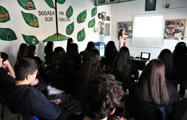 Ambalaj atıkları ve atık pilleri merkeze getiren öğrencilere geri dönüştürülmüş malzemeden üretilen kutular hediye edilirken, atık sanat atölyesi gezisi de atıkları yeniden değerlendirmenin farklı yolları konusunda yeni bakış açıları kazandırıyor.