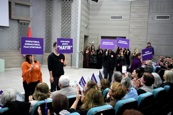 Bornova'da kadına şiddete hep bir ağızdan 'dur' denildi