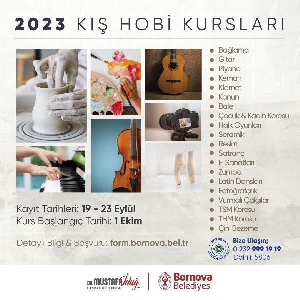 İZMİR'in Bornova Belediyesi hobi ve beceri edindirme kurslarını 1 Ekim'de başlatıyor. Kış dönemi kurslarına katılmak isteyenler 19 Eylül'den itibaren 'form.bornova.bel.tr' internet sitesi üzerinden kayıt yaptırabilecek.