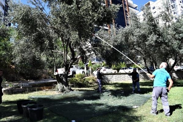 Bornova Belediyesi, ilçedeki parklarda bulunan zeytin ağaçlarını değerlendiriyor. Parklarda bulunan zeytin ağaçlarını tespit eden belediye ekipleri, hasat mevsimi ile olgunlaşan zeytinleri toplamaya başladı. Toplamanın tamamlanmasının ardından eleme çalışması yapılacak.