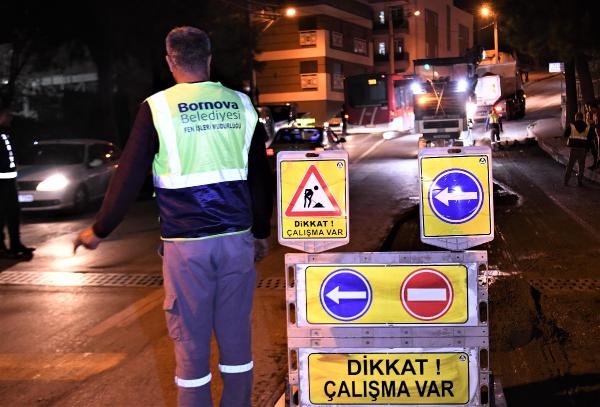 İZMİR'in Bornova ilçesinde, asfalt serim, yol yapım ve bakım onarım çalışmaları aralıksız sürüyor. Kızılay Mahallesi'nde gece yapılan çalışmaları yerinde inceleyen Bornova Belediye Başkanı Mustafa İduğ, "Hedefimiz Bornova'daki yol sorununu tamamen ortadan kaldırmak" dedi.
