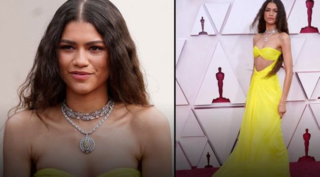 Şık, sarı elbisesiyle törene gelen Zendaya, kırmızı halıda ışıl ışıl parlayan elmas kolyesiyle poz verdi. Binlerce elmasın dizildiği milyon dolarlık kolye gazeteci ve davetlilerin de dikkatini çekti.
