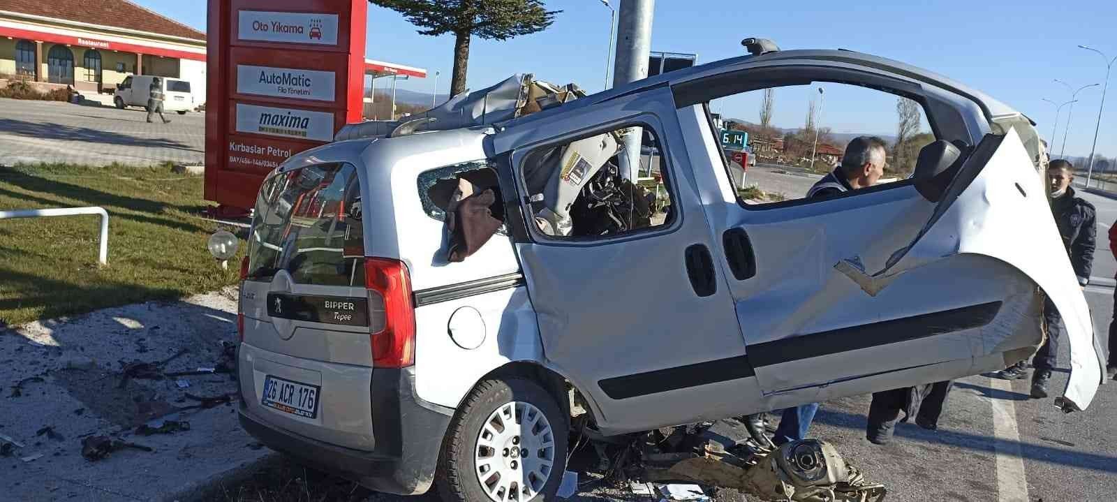 Kütahya'nın Çavdarhisar ilçesinde hafif ticari aracın yön levhasına çarpması sonucu meydana gelen trafik kazasında hurdaya dönen aracın sürücüsü ağır yaralandı.