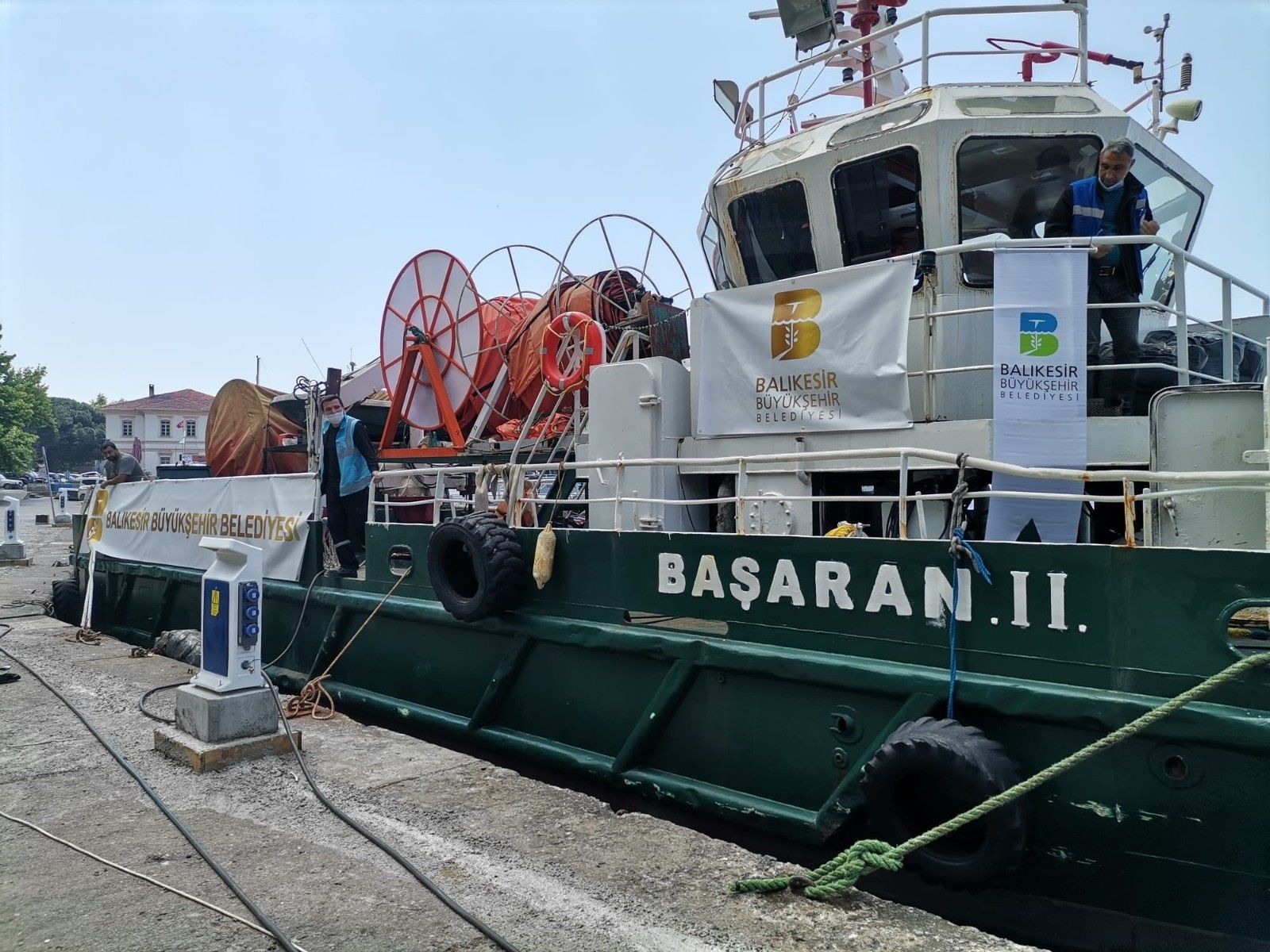 Marmara Denizi'ni kaplayan müsilaj için Balıkesir Büyükşehir Belediye Başkanı Yücel Yılmaz, Erdek Körfezi'ndeki müsilajı toplamak için gemi gönderdi.