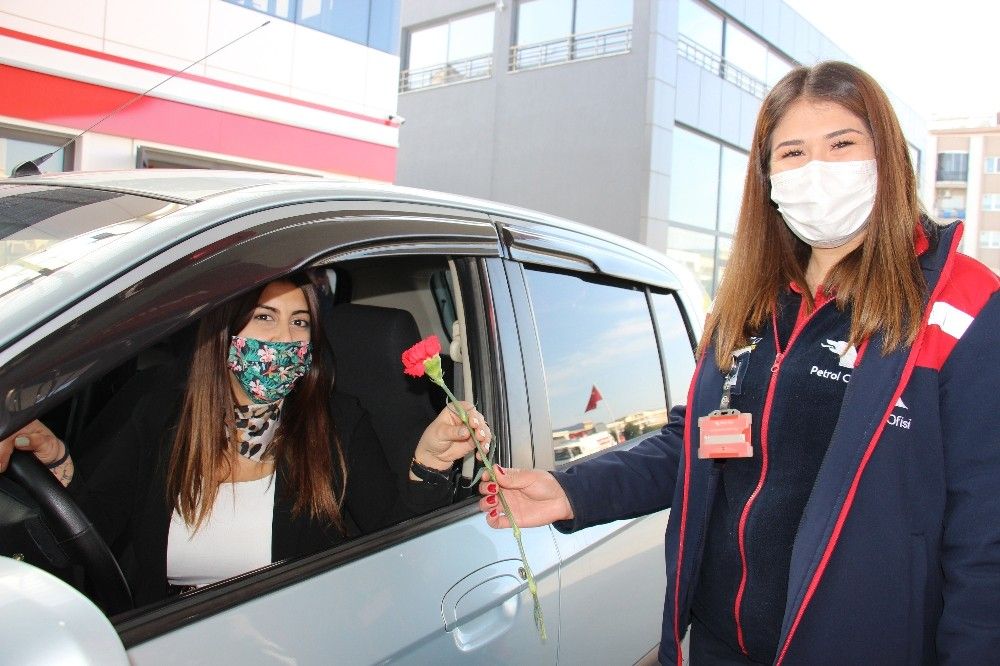 Ayrıca akaryakıt istasyonunda 8 Mart Dünya Kadınlar Günü dolayısıyla, yakıt almaya gelen bayan müşterilere kırmızı karanfil takdim edildi.