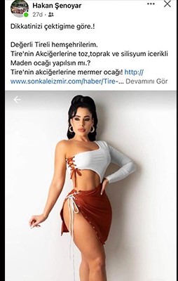 Şenoyar’ın ilçedeki mermer ocaklarına tepkisini dile getiren sosyal medya paylaşımında cinsiyetçi bir görsele yer vermesi kriz yaratmıştı.