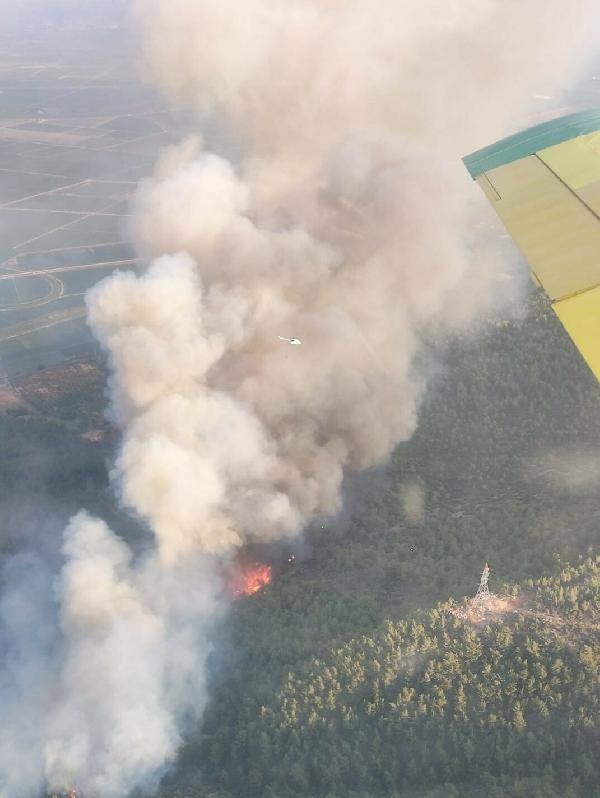 Alevlerin söndürülmesi için seferber olan ekipler, yangına 7 helikopter, 4 uçak ile havadan, 25 arazöz, 12 su tankeri ve 4 dozerle de karadan müdahale ediyor.