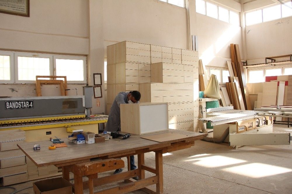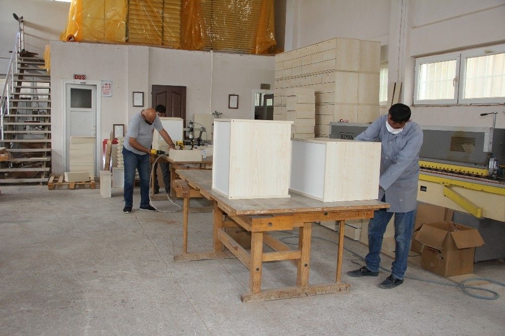 Mersin Üniversitesi (MEÜ), Teknik Bilimler Meslek Yüksekokulu bünyesinde açtığı atölyede üniversitenin tüm mobilya ihtiyacını karşılıyor