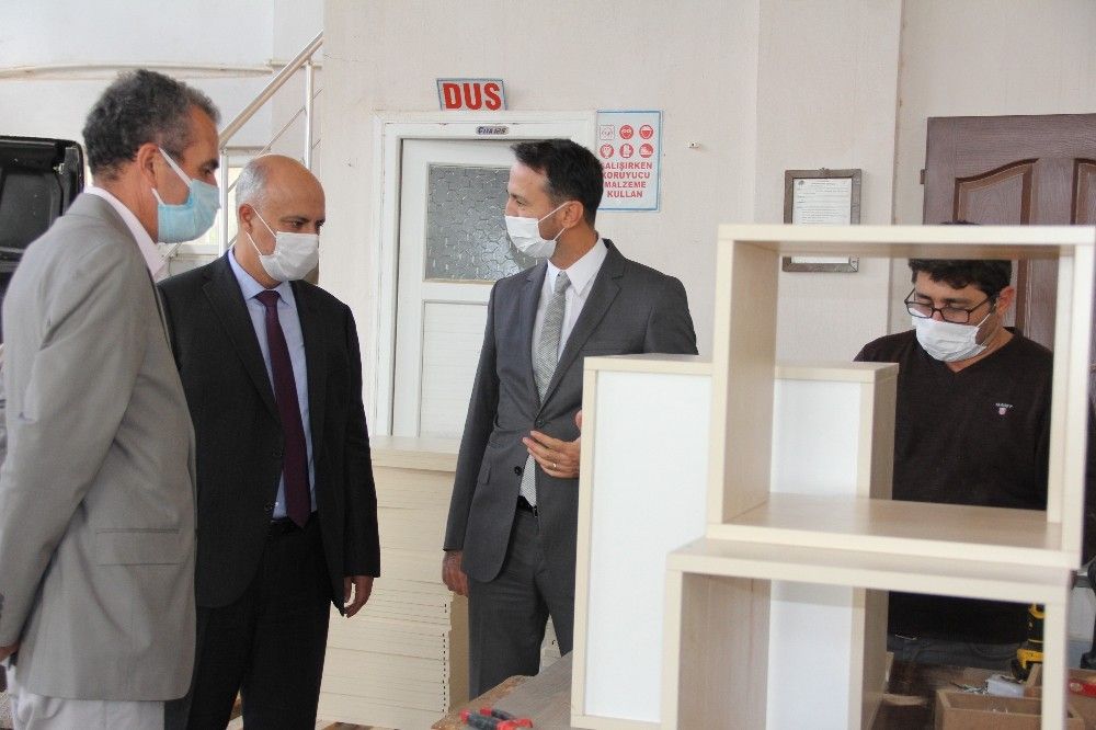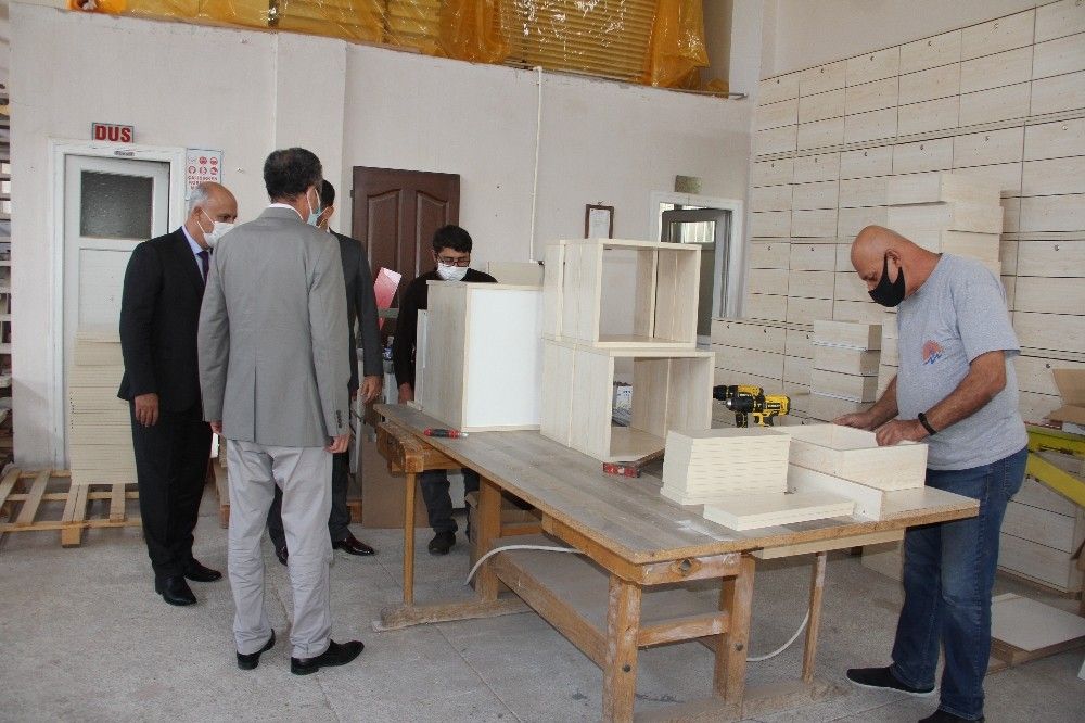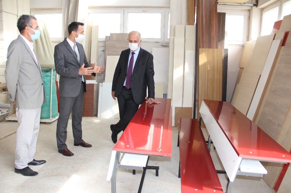 MEÜ Rektörü Prof. Dr. Ahmet Çamsarı, Teknik Bilimler Meslek Yüksekokulu bünyesinde açılan atölyede incelemelerde bulunarak, İHA muhabirine açıklama yaptı. Atölyeyi, Malzeme ve Malzeme İşleme Teknolojileri Bölümü Mobilya ve Dekorasyon Programı çerçevesinde açtıklarını belirten Rektör Çamsarı, "Biz sadece öğrenci yetiştirmek veya ar-ge değil, üretim konusunda da bir şeyler yapalım, hem bütçemize katkı alalım hem de öğrencilerimiz stajını burada yapabilsin diye bu atölyeyi açtık. Çok da güzel bir üretim sürecine girdik. Kendi üniversitemiz içinde ihtiyaçlarımızı karşılıyoruz. Bizim gurur duyduğumuz merkezlerden biri burası" dedi.