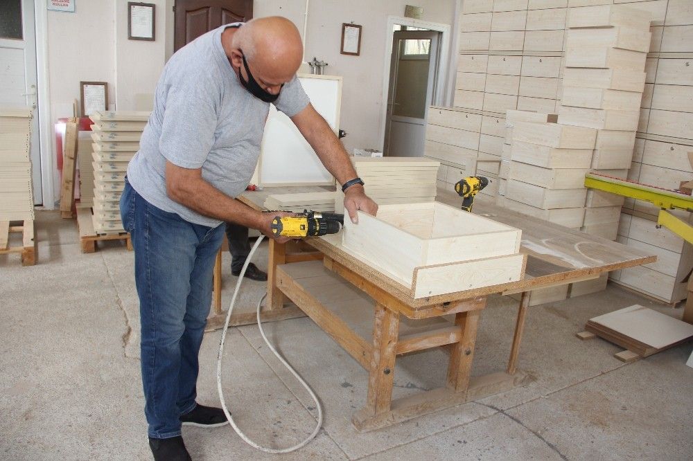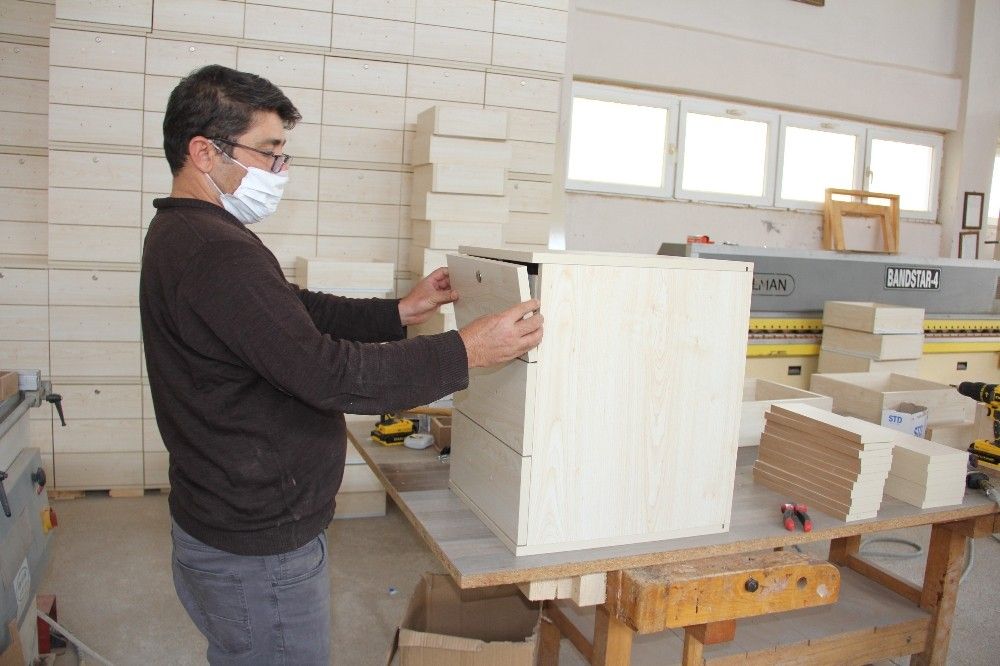 Atölyedeki üretimden sorumlu Mobilya ve Dekorasyon Programı Dr. Öğretim Üyesi Cevdet Saçlı da atölyede gerçekleştirdikleri üretimle ilgili bilgi verdi. Atölyede geçen yıllarda ve bu yıl çok ciddi çalışmalar yaptıklarını anlatan Saçlı, "Eğitim Fakültesi yeni yapıldığında iç mobilyalarının hepsini biz yaptık. Bu yıl da 565 adet ürün yaptık. Bunun 250 tanesi çeşitli ölçülerde masa; memur maması, öğretim elemanı masası. Bunların yanında bilgisayar masası ve kütüphane dolabıyla birlikte. Bu ürünlerin hepsini dışarıda yaptırmış olsak çok fazla maliyeti olacaktı. Burada mobilyaları kendi üniversitemiz için yapıyoruz ama dışarıdan talep olduğunda rahatlıkla yapabiliriz. Talep edenlere fiyatlarımızı veriyoruz, uygun görürlerse istedikleri ürünü yapıyoruz. Satış fiyatlarımız piyasaya göre ciddi oranda düşük olduğu için seviniyoruz. Dışarıdan gelen talepleri de daha uygun fiyatlarla yaparız. Milli Eğitim Müdürlüğü ile görüşme yapmıştık ama araya pandemi süreci girdi" ifadelerini kullandı.