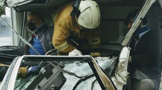 Izmir'in Buca ilçesinde meydana gelen trafik kazasında, kamyonet içerisinde sıkışan iki kişiyi itfaiye ekipleri kurtardı.