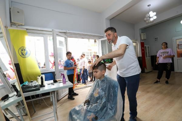 İZMİR'in Buca Belediyesi, kentteki çocuklara bayram sevinci yaşattı. İmkanları kısıtlı ailelerin çocukları için düzenlenen 'Başkan Amcadan Çocuklara Bayram Tıraşı' etkinliği büyük ilgi gördü.