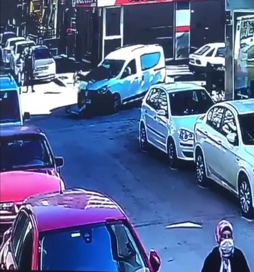 İzmir Buca'da elektrikli scooter ile bir aracın çarpışma anı saniye saniye güvenlik kameralarına yansıdı.