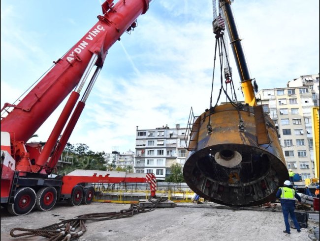 İzmir Büyükşehir Belediyesi’nin yapımını sürdürdüğü Buca Metrosu’nun tünel kazıları kesintisiz sürüyor. Çalışmalara hız kazandıran devasa boyuttaki 4 tünel açma makinesi ise tamamladıkları etapların ardından yeni rotalarına yerleştirilmek üzere farklı noktalara taşınıyor. General Asım Gündüz İstasyonu’ndan Üçyol Hat Başı Şaftı’na ulaşan 100 metre uzunluğunda, 7 metre genişliğinde ve 450 ton ağırlığındaki ikinci tünel açma makinesi de parçalar halinde General Asım Gündüz İstasyonu’na götürülecek. İzmir Büyükşehir Belediyesi, taşıma işlemi sırasında trafik için gerekli uyarılarda bulunarak önlemleri de aldı.