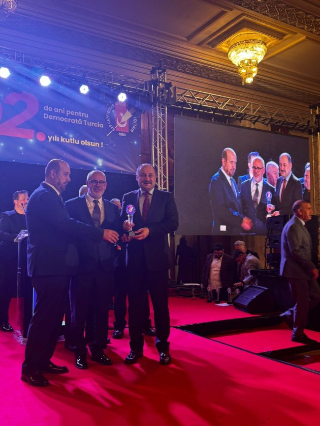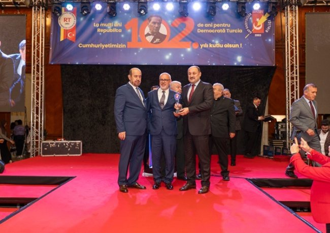 Ödülümü Şanlıurfa Büyükşehir Belediye Başkanı Kasım Gülpınar ve Romanya Türkiye Ticaret ve Sanayi Odası Başkanı Tamer Atalay’ın elinden aldım.