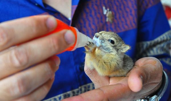 MANİSA'da, işlettiği odun deposunda ağaç altında bulduğu yavru sincabı sahiplenen Semih Kaya (26), biberonla süt veriyor. Sincabı büyüyünce doğaya salacağını belirten Kaya, "Kendi kendine beslenebileceğine emin olduktan sonra Manisa Spil Dağı'na, doğal ortamına bırakacağım" dedi.