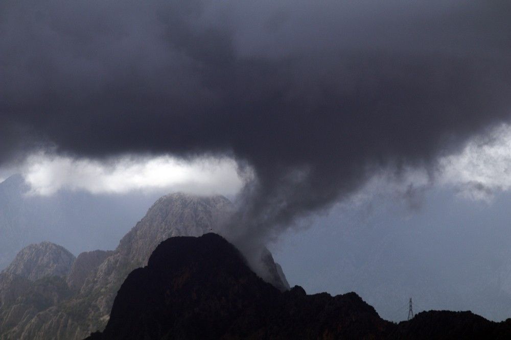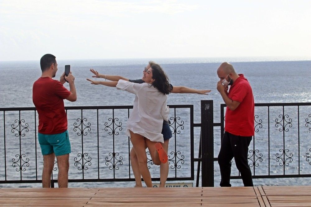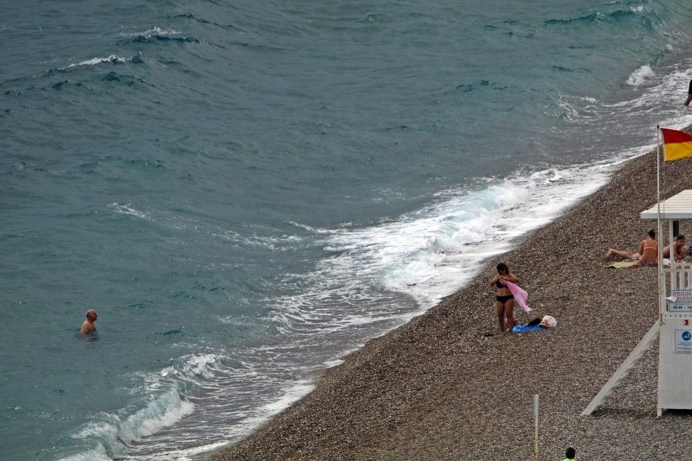 Antalya'da yağmur bulutları ve rüzgar dünyaca ünlü sahili boşalttı. Sahilde çok az sayıda kişi denize girerken, bazıları da boş sahilin manzarası eşliğinde fotoğraf çekindi.