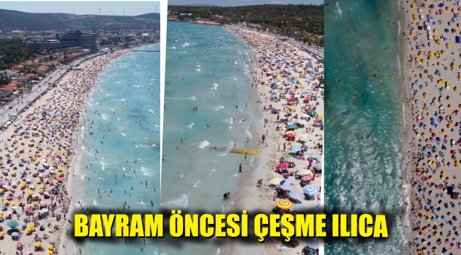 Dünyaca ünlü Çeşme Ilıca Plajı'nda bayram öncesi yaşanan kalabalık dikkat çekiyor.