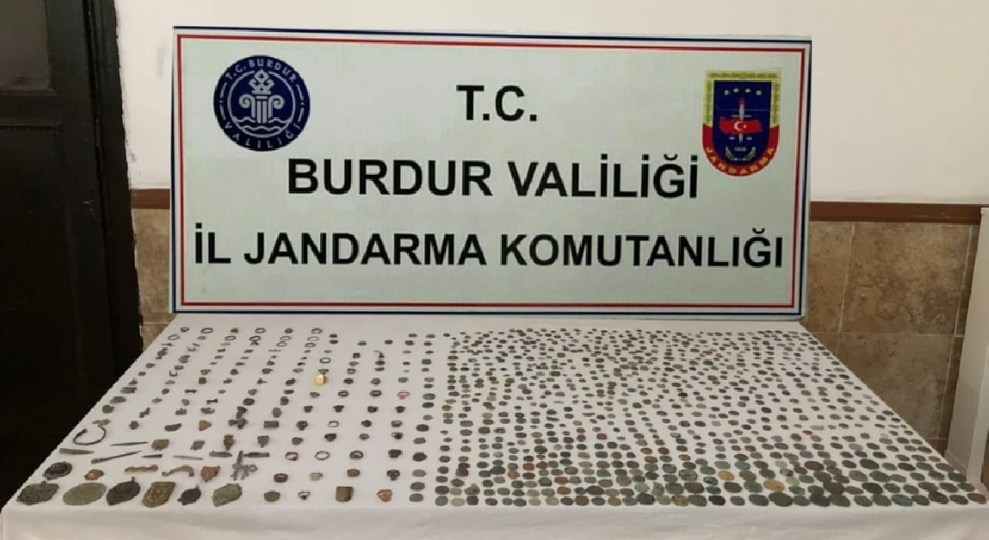 Burdur İl Jandarma Komutanlığı ekipleri, 5 kişinin elinde bulundurdukları tarihi eserleri satacağına yönelik bilgisini aldı. Çeltikçi ilçesi Kuzköy köyünde G.A., T.D., S.A., M.A. ve S.K. isimli şüpheli şahısların bulunduğu araçta arama yapan jandarma, araçta ve şahısların üzerlerinde 806 adet sikke, 81 adet figür, 55 adet yüzük ve 2 adet küpe ele geçirdi.