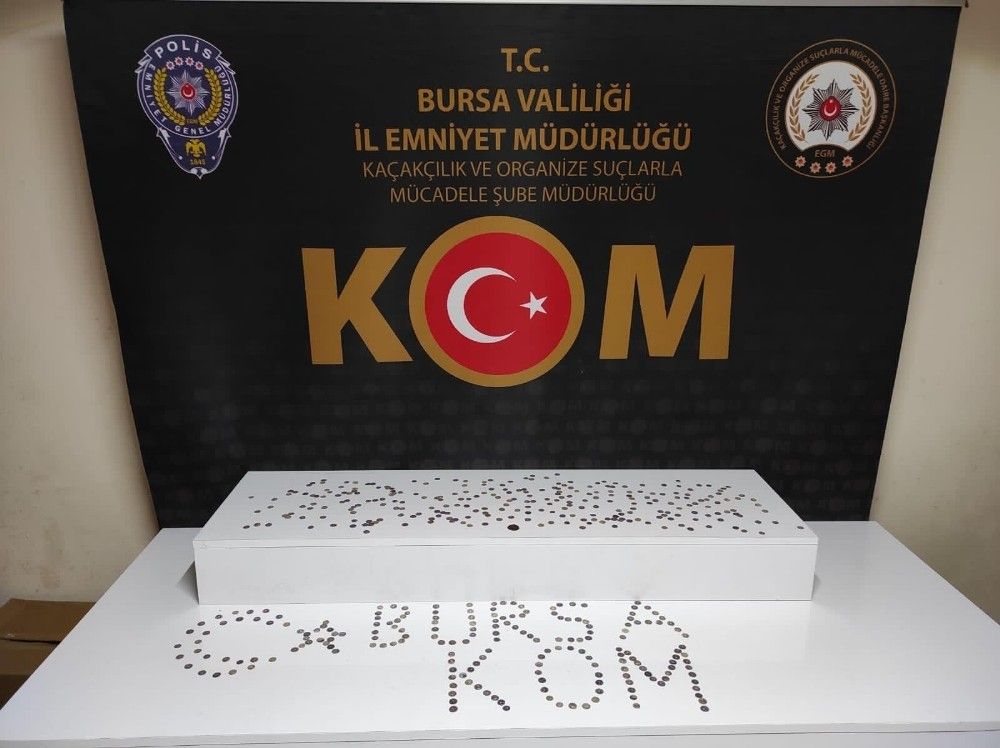 Bursa Emniyet Müdürlüğü Kaçakçılık ve Organize Suçlarla Mücadele Şube Müdürlüğü Kaçakçılık Suçları Büro Amirliği ekipleri tarafından, tarihi eser varlıkların korunması, kaçakçılık faaliyetlerinin önüne geçilmesi kapsamında yapılan çok yönlü çalışmalarda Yıldırım ilçesinde yapılan operasyonda Ü.T. isimli şahıs gözaltına alındı.