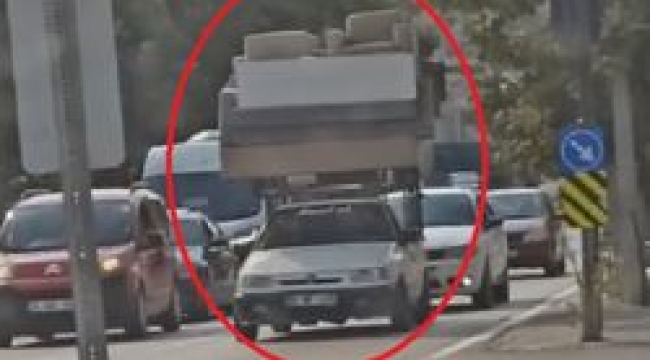 Bursa'da 3 farklı aracın trafiğe tehlikeye düşüren eşya taşıma görüntüleri kameraya yansıdı.