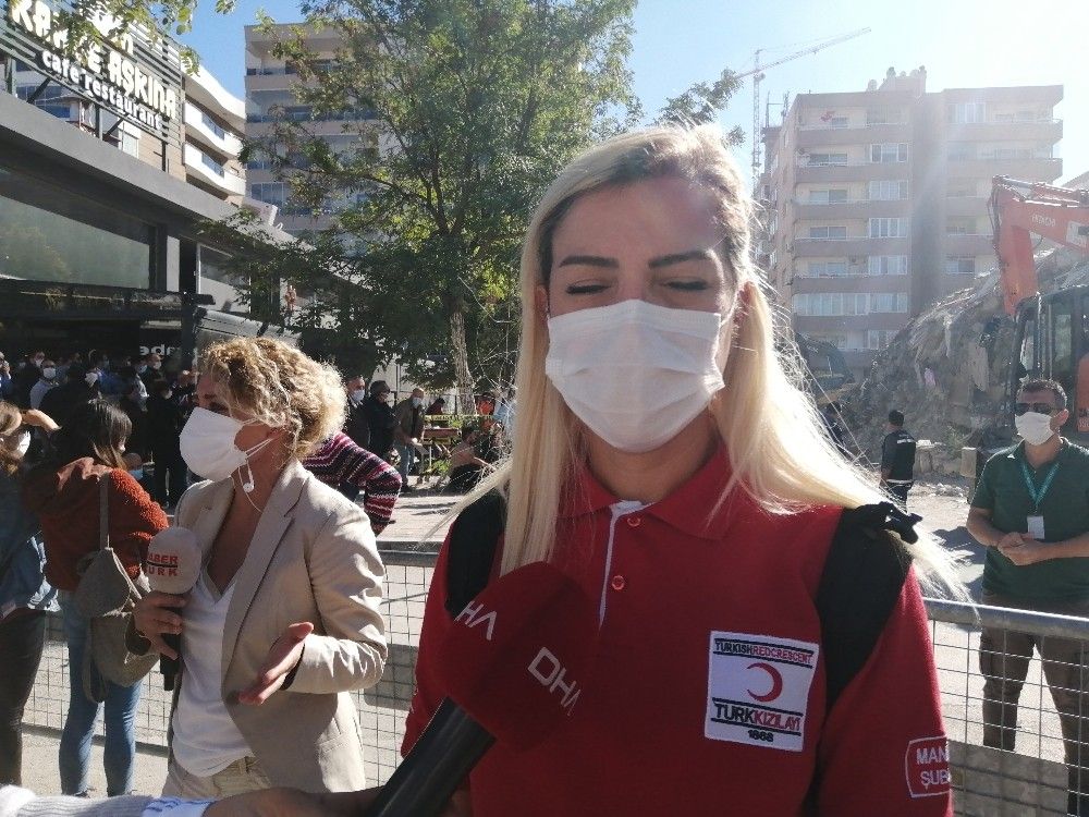 İzmir'de meydana gelen depremde enkaz altındaki Buse Hasyılmaz ile telefonda konuşarak onu sakinleştiren Kızılay görevlisi, o anları anlattı.