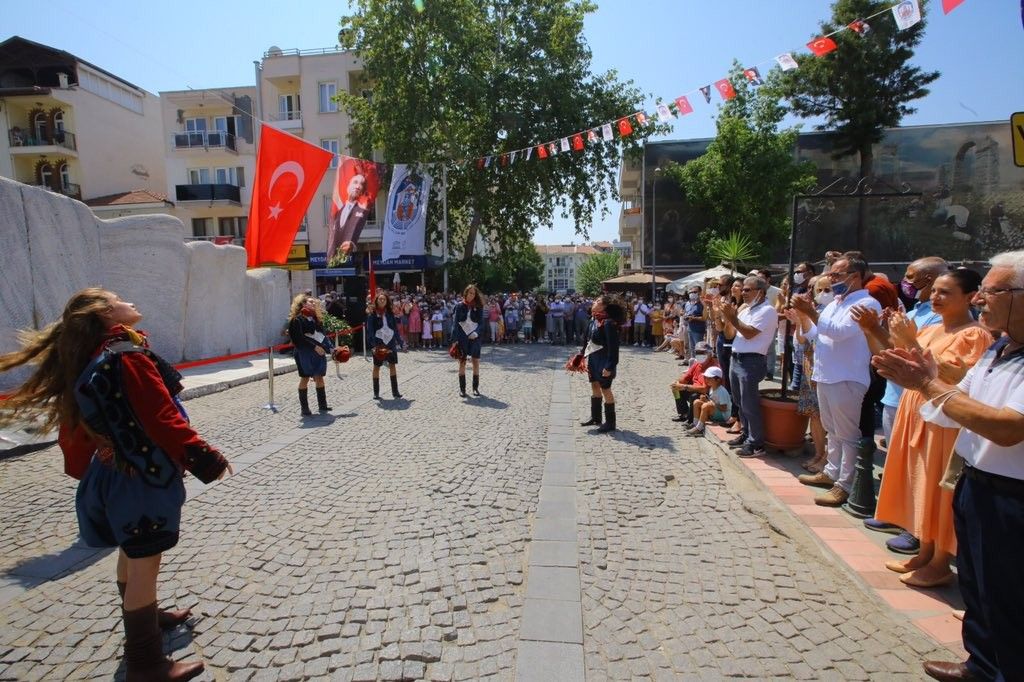 Başkan Sengel'in konuşmasının ardından Ulaş Erol yönetimindeki Selçuk zeybek ekibi bir gösteri sundu. Selçuk Belediyesinin çağrısıyla gerçekleşen törende katılımcılar, saat 12.30'da Ulu Önder Mustafa Kemal Atatürk'ün siluetinin Kurtuluş Yolu Anıtı'nda görülmesine bir kez daha heyecanla tanık oldu.